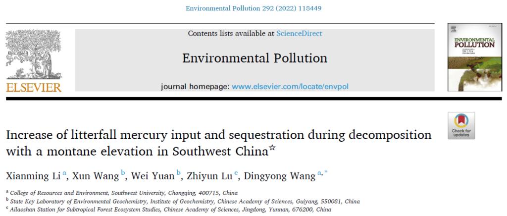 森林系统占全球陆地总面积的31%,是全球生物地球化学循环最活跃的地区之一。研究表明,除了大气直接降雨带来汞的湿沉降外,全球森林凋落物沉降汞的总量大约是人为汞排放总量的50-60%。同时,使用汞稳定同位素的大量研究也已证实,通过凋落物沉降的汞是森林土壤汞的主要来源。鉴于世界大面积的山地森林,了解沿凋落物汞输入及其相关影响因素将有助于深入了解全球汞循环。具体而言,山地森林中海拔、气候和植被之间的协同反馈可能导致凋落物生物量、大气汞浓度和凋落物汞沉降的差异。因此,了解沉降后凋落物中汞的动态对于解决森林地面汞的源汇特征具有重要意义。然而目前的研究对凋落物分解过程中汞的去向有不同的评估。考虑到复杂的地形、气候条件和植被类型,量化凋落物分解过程中汞的动态和主要影响因素将有助于我们了解山地森林中汞的固存过程。
