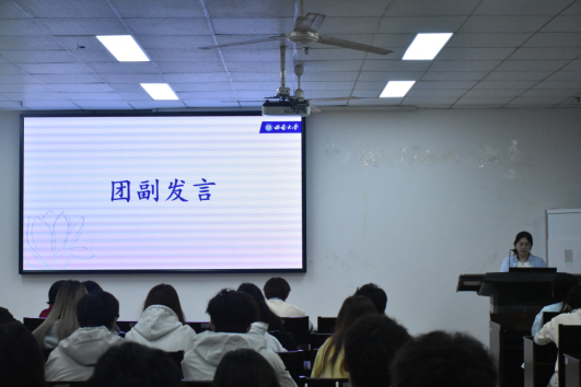 首先,院团委副书记犹欣怡发言。她强调了创建“光炯先进班级”活动的重要性,希望各团支部以“光炯先进班级”创建活动为载体,了解侯光炯先生的生平事迹,深入挖掘“光炯精神”的内涵。