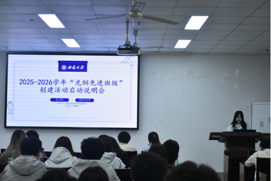 为推动学院教育教学改革,弘扬侯光炯院士的精神,提高班级管理水平和推进学风建设,10月18日14:00,学院于35教201举行2025-2026年“光炯先进班级”创建活动启动大会。院团委学生会主席团出席会议,学风建设部负责人,各年级班长、团支书、学习委员参会。